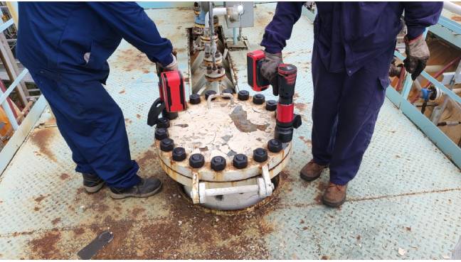 其次,同步預緊時所選用的設備最好是出自同一廠家的相同型號鋰電扭矩扳手,這樣才能保證誤差相當,螺栓預緊力均勻分布。